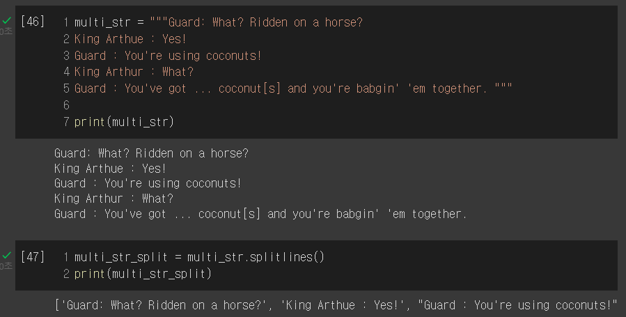 splitlines : 여러 행을 가진 문자열을 분리한 후, 리스트로 반환한다.