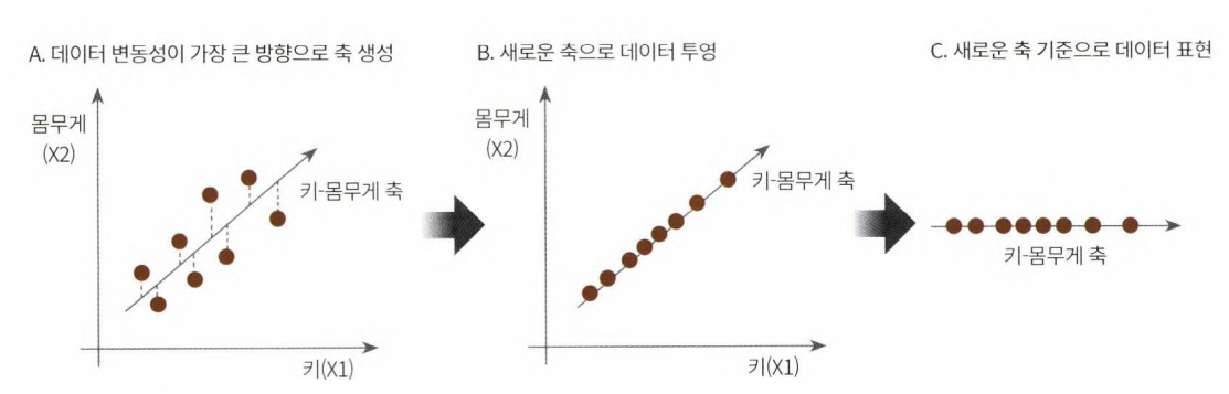 - 단순 압축이 아니다. 피처를 함축적으로 더 잘 설명할 수 있는 또 다른 공간으로 매핑해 추출하는 것