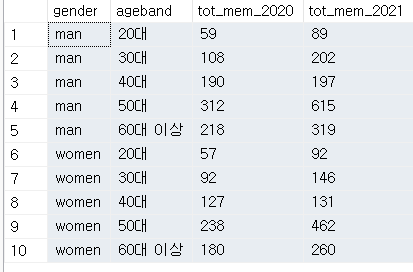 ELSE '60대 이상' END AS ageband