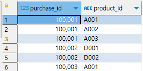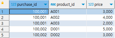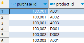 purchase_id에 따른 product_id 상품들을 집약해서 보여주기