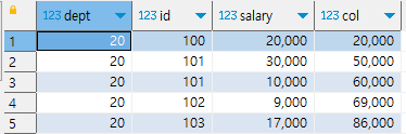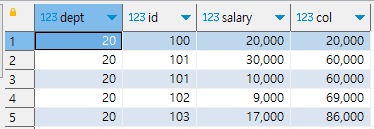 sum(salary) over (partition by dept order by id rows between unbounded preceding and current row) col