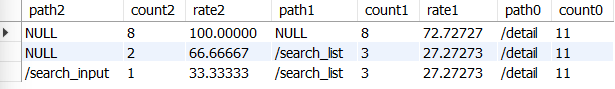 : path0=/detail로 필터링하여 상세 페이지에서 시작하는 흐름만을 분석하고, path0→1로 이동한 접근 수, path1→2로 이동한 접근 수 계산하기