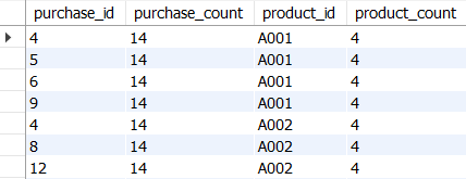 -> 4개의 키페어(구매 로그 총 수, A 구매 수, B 구매 수, 동시 구매 수)를 구한 테이블