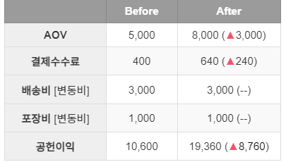 - 매출 (▲63.83%) / 변동비>포장비 (▼ -13.87%) - 매출은 60%이상 증가했는데, 포장비는 오히려 감소