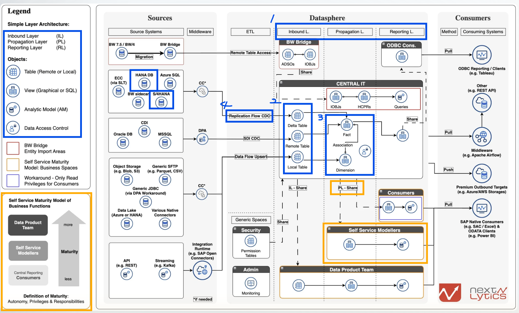 : 최종적으로 사용자가 데이터를 소비하는 공간으로 sac, power bi 와 같은 리포팅 도구에서 분석 및 시각화 수행