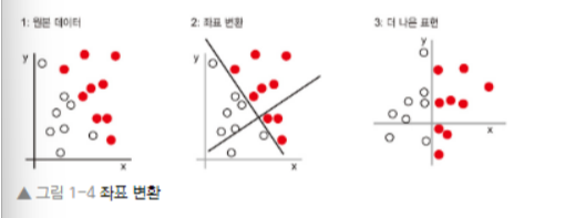 - 이러한 데이터 변환과정은 분류 작업과 같은 문제를 더 쉽게 해결할 수 있게 해준다.