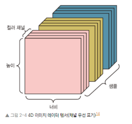 - 신경망을 위한 데이터 표현 - 스칼라,벡터,행렬,3D텐서와 고차원 텐서, ..