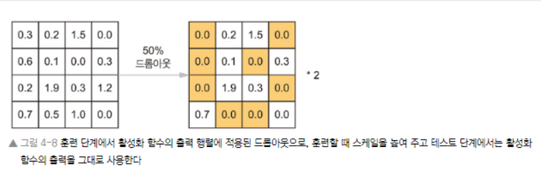 # 훈련 단계에서 이 두 연산을 포함시켜 테스트 단계에는 출력을 그대로 두도록 구현할 수 있다.