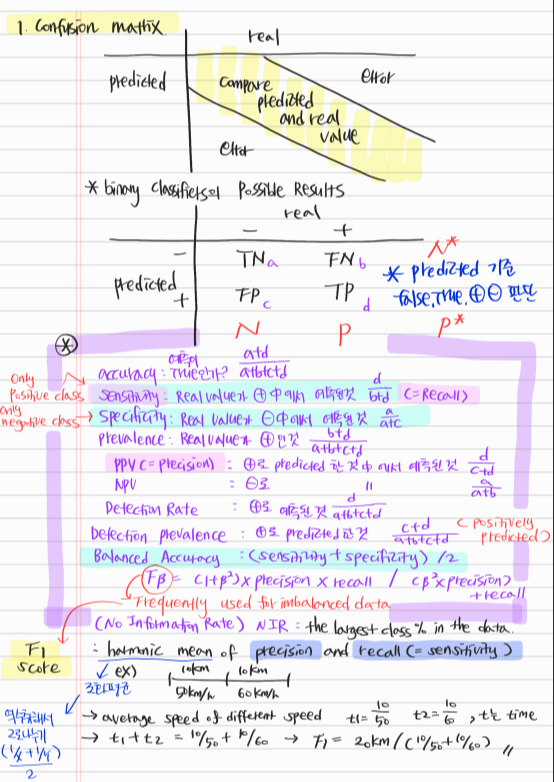 - 클래스의 분포가 균일하지 않은 문제에서는 정밀도(precision)와 재현율(recall)을 사용할 수 있다.