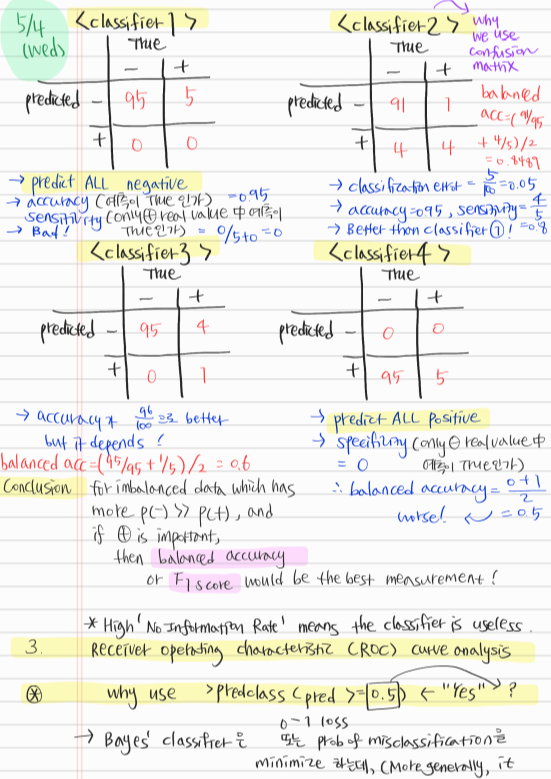 - 클래스의 분포가 균일한 분류 문제에서는 accuracy와 ROC AUC가 일반적 지표이다.