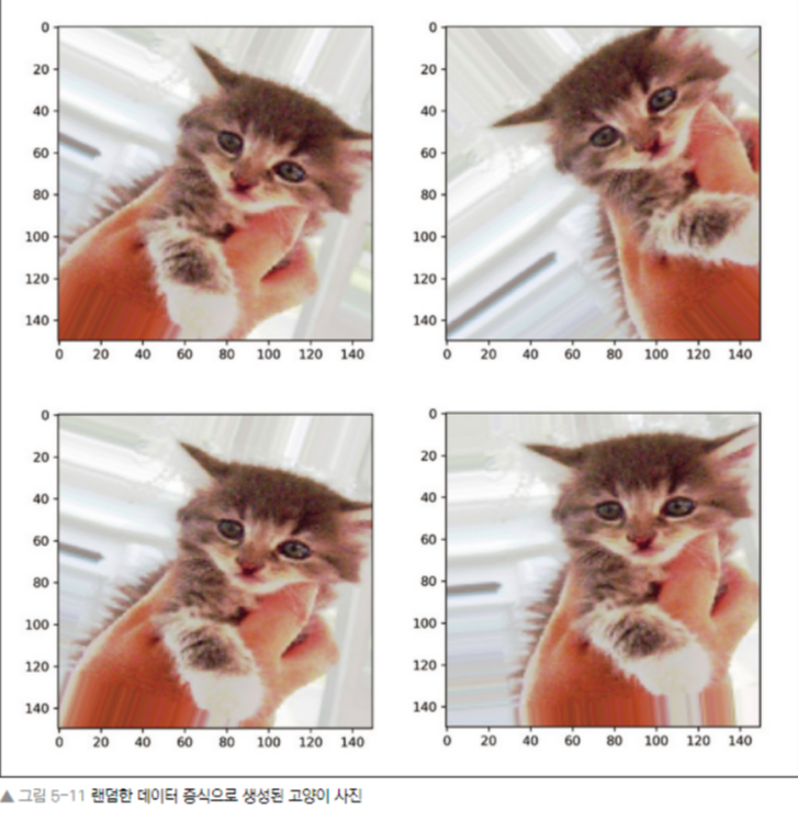 - 여기에서는 컴퓨터비전에 특화되어 있어서, 딥러닝으로 이미지를 다룰 때 매우 일반적으로 사용되는 새로운 방법인 데이터 증식을 시도해보자.